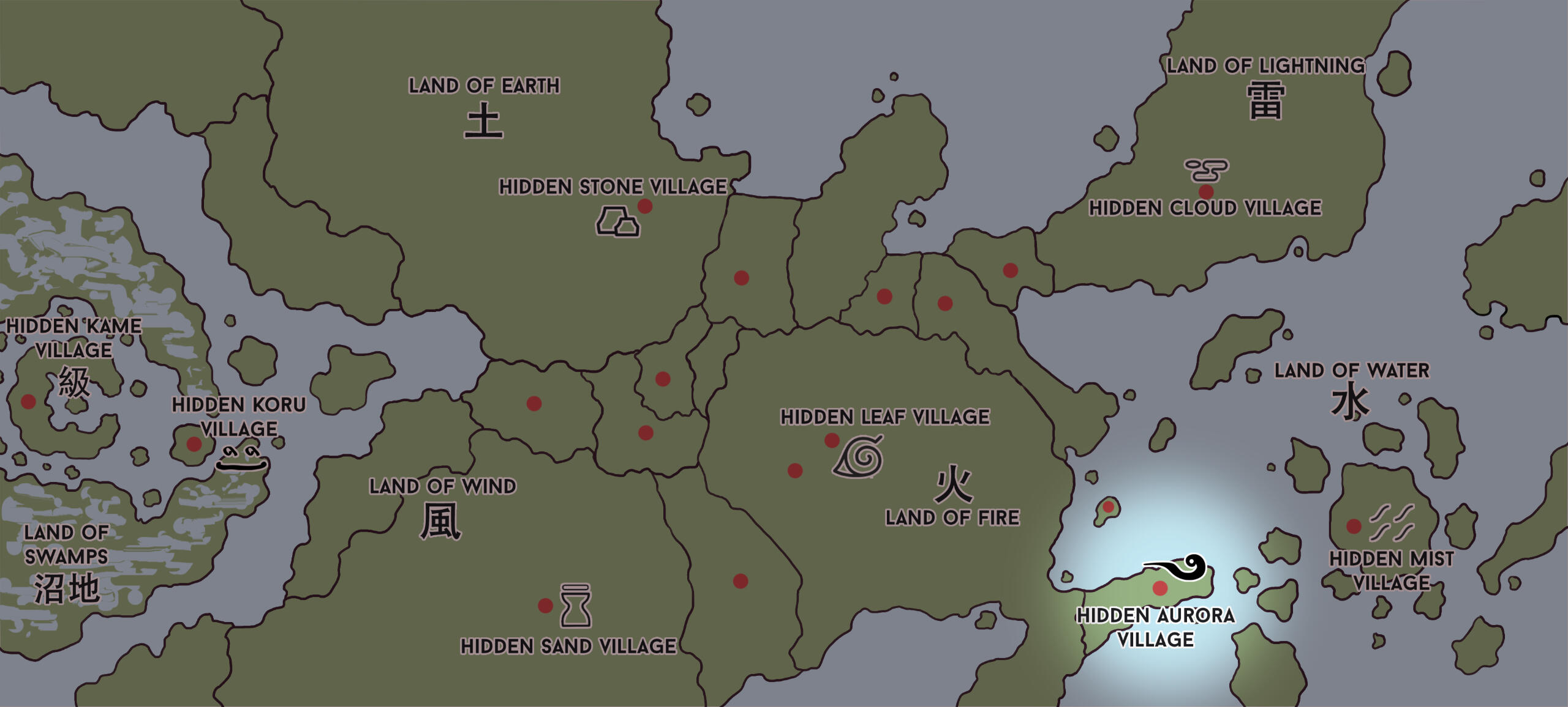 Map made by anruki. The Kyuzazame clan is important for the future of Ōroragakure and are therefore connected with each other, hence the inclusion of the land of swamps.