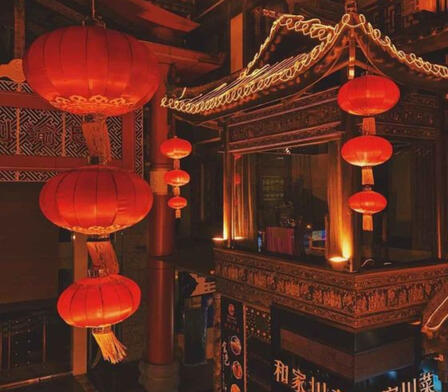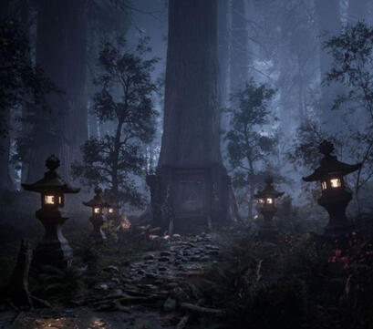 The hidden aurora village is densly decorated. Lanterns, candles and shrines shape the environment of the village. It's built circularly, with a marketplace forming in the middle which is also the go-to place for festivals and ceremonies.